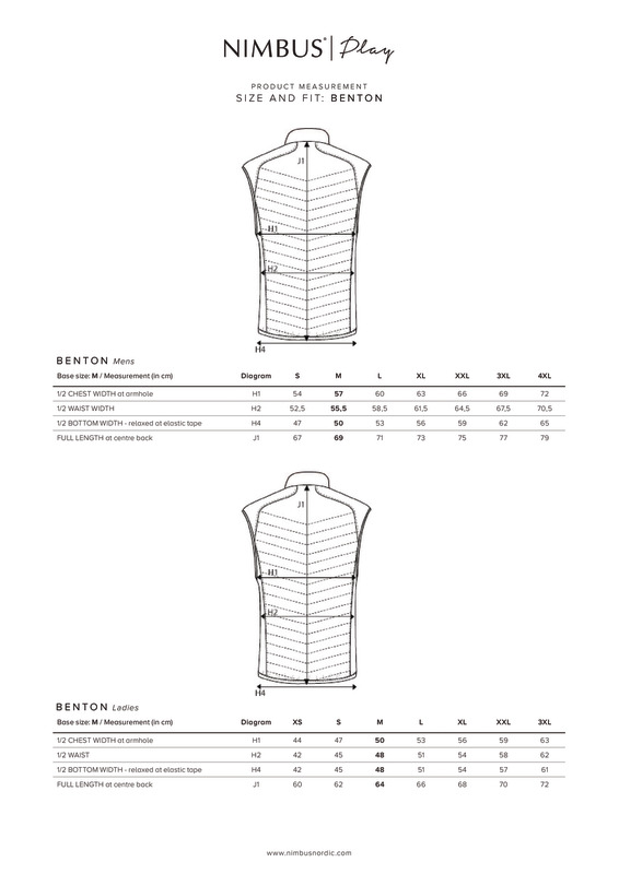 Benton has all the active versatility that comes with a hybrid vest. It’s a perfect option when you want to achieve full arm movement while keeping the rest of your body warm, or for the sunny moments when you want to shed the jacket and layer up without overheating. Lightweight Sorona® Aura fibre insulation makes this sporty essential your everyday go-to. Comfortable enough to wear all day and still stylish enough to maintain a cool, athleisure look.DETAILS: Reverse main zip with metal logo pullerInside adjustable drawstringSorona® Aura quilted paddingRecycled FabricWater-repellent finish (Bionic Finish® ECO)SUSTAINABILITY: ReachGlobal CompactAmforiOuter fabric: Recycled fabric (mainly plastic bottles, packaging, fishing nets or textile waste)Padding: Sorona® Aura insulation (made from 30% Bio-based fabric)Accreditations: Reach|Amfori BSCIAge Group: AdultFabric: Outer fabric: 100% Recycled nylon - 95% Recycled softshell, 5% Elastane. Padding: 100% Polyester; Sorona® Aura. (AURA insulation is made from 30% Bio-based material)Gender: FemalePlus Size: YesProduct Type: Gilets & Body WarmersSize Range: XS – 3XLSizing To Fit: XS 8 S 10 M 12 L 14 XL 16 2XL 18 3XL 20Tag: Sewn TagWeight (GSM): Shell Nylon: 38gsm. Softshell: 270gsm. Lining: 65gsm]]>