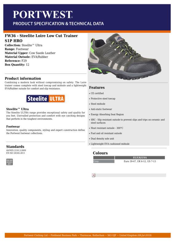 Portwest Steelite™ Loire low cut trainer S1P HRO (FW36)
