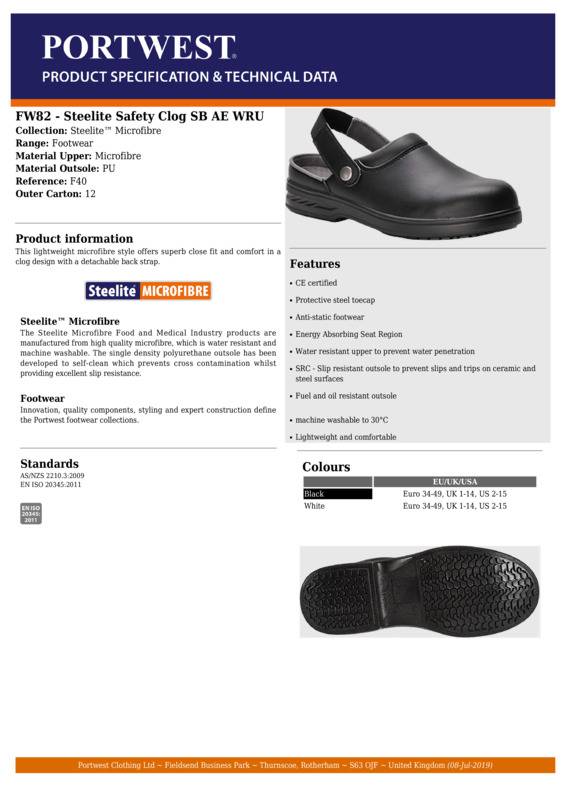 Portwest Steelite safety clog SB (FW82)