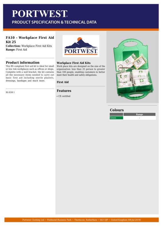 Portwest Workplace first aid kit (FA10)