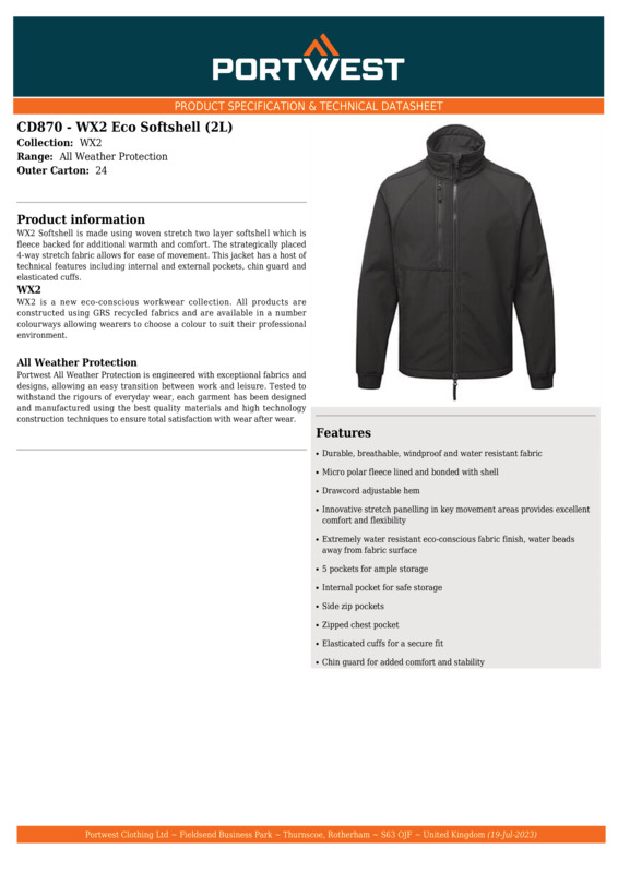 WX2 softshell is made using woven stretch 2-layer softshell which is fleece backed for additional warmth and comfort. The strategically placed 4-way stretch fabric allows for ease of movement. This jacket has a host of technical features including internal and external pockets, chin guard and elasticated cuffs.Durable, breathable, windproof and water-resistant fabricMicro polar fleece lined and bonded with shellDrawcord adjustable hemInnovative stretch panelling in key movement areas provides excellent comfort and flexibilityExtremely water-resistant eco-conscious fabric finish, water beads away from fabric surfaceFive pockets for ample storageInternal pocket for safe storageSide zip pocketsZipped chest pocketElasticated cuffs for a secure fitChin guard for added comfort and stabilityMade using recycled plastic bottlesOeko-Tex, WRAP GOLD, Eco Vadis and Sedex certified.Accreditations: Oeko-Tex|WRAP|SedexAge Group: AdultFabric: Shell fabric: 100% GRS polyester 2L softshell bonded to 100% GRS polyester micro polar fleece. Contrast fabric: Kingsmill polyester stretch 93% Polyester, 7% ElastaneGender: UnisexPlus Size: YesProduct Type: SoftshellsSize Range: S to 3XLSizing To Fit: S 36/38″ M 40/41″ L 42/44″ XL 46/48″ 2XL 50/52″ 3XL 54/55″Tag: Tear-outWashing Instructions: Wash at or below 40 degrees. Do not bleach. Do not tumble dry. Do not iron. Do not dry clean.Weight (GSM): 280g]]>