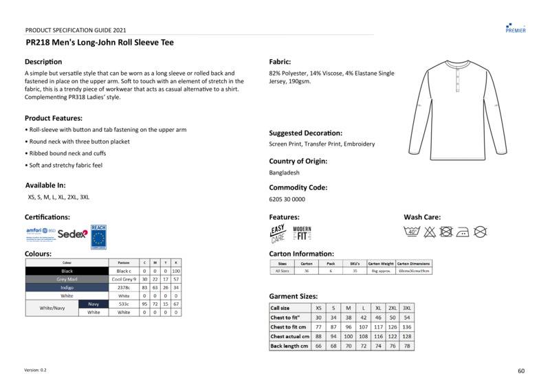Take on a modern utilitarian trend with this men's roll sleeve tee. A simple but versatile style that can be worn as a long sleeve or rolled back and fastened in place on the upper arm. Soft to touch with an element of stretch in the fabric, this is a trendy piece of workwear that acts as casual alternative to a shirt.Long sleeve tee that has roll sleeve capabilities with button tab on the inside of the sleeve to secure in placeRound neck style with three a button placketTwin-needle stitching to the hem and cuffBSCI certifiedReach certifiedSEDEX certified.Accreditations: Amfori BSCI|Sedex|ReachAge Group: AdultFabric: 82% Polyester, 14% Viscose, 4% ElastaneGender: MalePlus Size: YesProduct Type: T-ShirtsSize Range: XS to 3XLSizing To Fit: XS 30″ S 34″ M 38″ L 42″ XL 46″ 2XL 50″ 3XL 54″Tag: Sewn TagWashing Instructions: Domestic wash at 40°c.Weight (GSM): 190gsm]]>