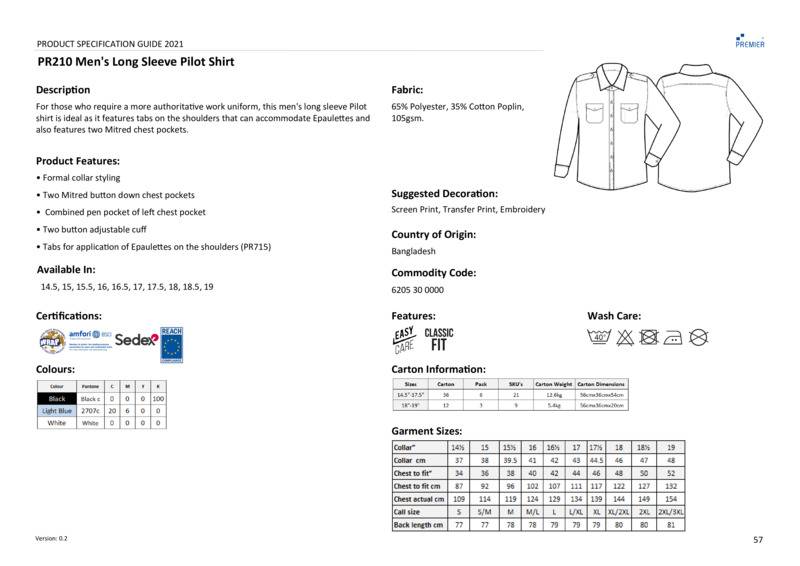 For those who require a more authoritative approach to their working uniform, this men's long sleeve Pilot shirt is ideal as it features tabs on the shoulders that can accommodate Epaulettes and has two button down chest pockets.For those who require a more authoritative work uniform, this men's long sleeve Pilot shirt is ideal as it features tabs on the shoulders that can accommodate epaulettesWRAP certifiedBSCI certifiedReach certifiedSEDEX certified.Accreditations: Amfori BSCI|Sedex|WRAP|ReachAge Group: AdultFabric: 65% Polyester, 35% CottonGender: MalePlus Size: YesProduct Type: ShirtsSize Range: 14.5″ to 19″Sizing To Fit: 14.5″ 34″ 15″ 36″ 15.5″ 38″ 16″ 40″ 16.5″ 42″ 17″ 44″ 17.5″ 46″ 18″ 48″ 18.5″ 50″ 19″ 52″Tag: Sewn TagWashing Instructions: Domestic wash at 40c. Wash dark colours separately. Wash inside outWeight (GSM): 105gsm]]>
