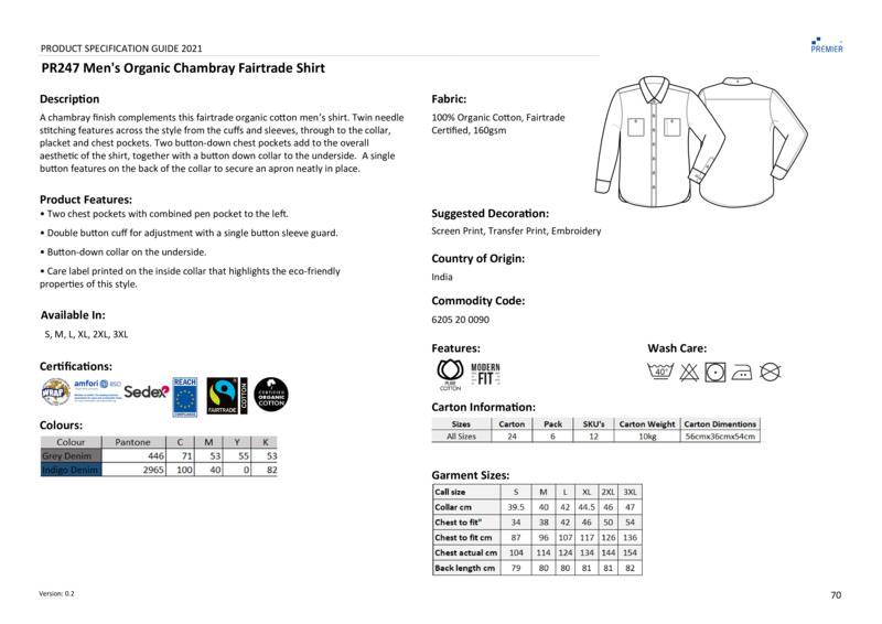 Premier Men’s Chambray shirt, organic and Fairtrade certified