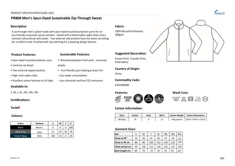 Premier Men's spun dyed sustainable zip-through sweatshirt