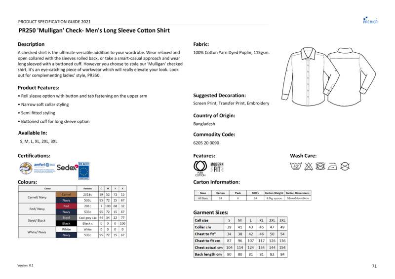 A checked shirt is the ultimate versatile addition to your wardrobe. Wear relaxed and open collared with the sleeves rolled back, or take a smart-casual approach and wear long sleeved with a buttoned cuff. However you choose to style our 'Mulligan' checked shirt, it's an eye-catching piece of workwear which will really elevate your look.Long sleeve semi-fitted shirt for men with a multi-coloured contrast check patternSingle button cuff and sleeve guard which is designed to be rolled up and secured in place with a button and tab on the upper armSoft collar styling with curved hemWRAP certifiedBSCI certifiedReach certifiedSEDEX certified.Accreditations: Amfori BSCI|Sedex|WRAP|ReachAge Group: AdultFabric: 100% Cotton, yarn-dyed poplinGender: MalePlus Size: YesProduct Type: ShirtsSize Range: S to 3XLSizing To Fit: S 34″ M 38″ L 42″ XL 46″ 2XL 50″ 3XL 54″Tag: Tear-outWashing Instructions: Domestic wash at 40°c.Weight (GSM): 115gsm]]>