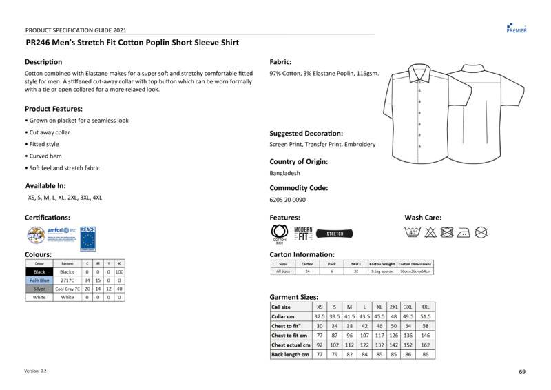 Cotton combined with elastane makes for a super soft and stretchy comfortable fitted short sleeve style for men.Cotton combined with elastane makes for a super soft and stretchy comfortable fitted style for menA stiffened cut-away collar with top button which can be worn formally with a tie or open collared for a more relaxed lookWRAP certifiedBSCI certifiedReach certified.Accreditations: Amfori BSCI|WRAP|ReachAge Group: AdultFabric: 97% Cotton, 3% ElastaneGender: MalePlus Size: YesProduct Type: ShirtsSize Range: XS to 4XLSizing To Fit: XS 30″ S 34″ M 38″ L 42″ XL 46″ 2XL 50″ 3XL 54″ 4XL 58″Tag: Sewn TagWashing Instructions: 40°C machine wash. Wash dark colours separately. Wash inside out. Do not soak. Do not dry clean.Weight (GSM): 115gsm]]>