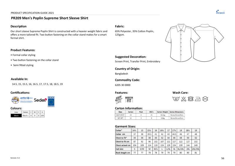 A short sleeved Poplin Shirt offering a heavier weight material for durability. The semi-fitted styling creates a fashionable look, whilst stiffened formal collar looks great when complemented by a plain or patterned tie.Supreme heavier weight poplin shirt with improved wear and appearanceStiffened formal cut collarTwo button fastening detail on collar standSemi fitted stylingEasy cut-out label for rebrandingEasycareMade from OEKO-TEX® Standard 100 fabricWRAP certifiedBSCI certifiedReach certifiedSEDEX certified.Accreditations: Amfori BSCI|Sedex|WRAP|ReachAge Group: AdultFabric: 65% Polyester, 35% Cotton, plain poplin weaveGender: MalePlus Size: YesProduct Type: ShirtsSize Range: 14.5″ to 19″Sizing To Fit: 14.5″ 34″ 15″ 36″ 15.5″ 38″ 16″ 40″ 16.5″ 42″ 17″ 44″ 17.5″ 46″ 18″ 48″ 18.5″ 50″ 19″ 52″Tag: Sewn TagWashing Instructions: Domestic wash at 40c. Wash dark colours separately. Wash inside outWeight (GSM): 125gsm]]>