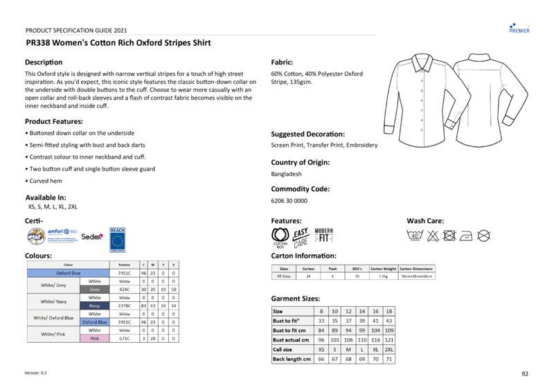 A welcome addition to our range of signature Oxford shirts, this style is designed with narrow vertical stripes for a touch of high street inspiration.A welcome addition to our range of signature Oxford shirts, this style is designed with narrow vertical stripes for a touch of high street inspirationAs you would expect, this iconic style features the classic button-down collar on the underside with double buttons to the cuffChoose to wear more casually with an open collar and roll-back sleeves, and a flash of contrast fabric becomes visible on the inner neckband and inside cuffWRAP certifiedBSCI certifiedReach certifiedSEDEX certified.Accreditations: Amfori BSCI|Sedex|WRAP|ReachAge Group: AdultFabric: 60% Cotton, 40% Polyester, cotton-rich Oxford weaveGender: FemalePlus Size: NoProduct Type: BlousesSize Range: XS to 2XLSizing To Fit: XS 8 S 10 M 12 L 14 XL 16 2XL 18Tag: Sewn TagWashing Instructions: 40°C machine wash. Wash dark colours separately. Wash inside out. Do not soak. Do not dry clean.Weight (GSM): 135gsm]]>