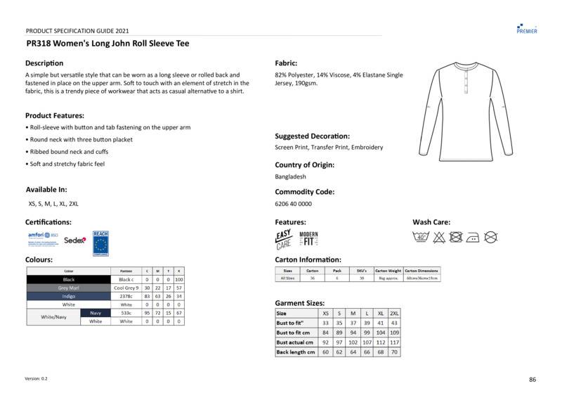 Take on a modern utilitarian trend with this women's roll sleeve tee. A simple but versatile style that can be worn as a long sleeve or rolled back and fastened in place on the upper arm. Soft to touch with an element of stretch in the fabric, this is a trendy piece of workwear that acts as casual alternative to a shirt.Long sleeve tee that has roll sleeve capabilities with button tab on the inside of the sleeve to secure in placeRound neck style with a three button placketTwin-needle stitching to the hem and cuffBSCI certifiedReach certifiedSEDEX certified.Accreditations: Amfori BSCI|Sedex|ReachAge Group: AdultFabric: 82% Polyester, 14% Viscose, 4% ElastaneGender: FemalePlus Size: NoProduct Type: T-ShirtsSize Range: XS to 2XLSizing To Fit: XS 8 S 10 M 12 L 14 XL 16 2XL 18Tag: Sewn TagWashing Instructions: Domestic wash at 40°c.Weight (GSM): 190gsm]]>
