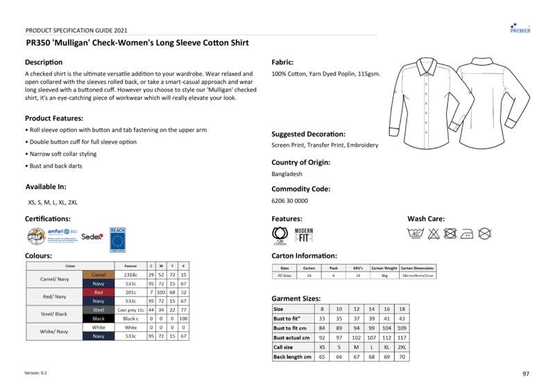 A checked shirt is the ultimate versatile addition to your wardrobe. Wear relaxed and open collared with the sleeves rolled back, or take a smart-casual approach and wear long sleeved with a buttoned cuff. However you choose to style our 'Mulligan' checked shirt, it's an eye-catching piece of workwear which will really elevate your look.A women's long sleeve semi-fitted shirt with multi-coloured contrast check patternSingle button cuff and sleeve guard which is designed to be rolled up and secured in place with a button and tab on the upper armSoft collar styling with curved hemWRAP certifiedBSCI certifiedReach certifiedSEDEX certified.Accreditations: Amfori BSCI|Sedex|WRAP|ReachAge Group: AdultFabric: 100% Cotton, yarn-dyed poplinGender: FemalePlus Size: NoProduct Type: ShirtsSize Range: XS to 2XLSizing To Fit: XS 8 S 10 M 12 L 14 XL 16 2XL 18Tag: Tear-outWashing Instructions: Domestic wash at 40°c.Weight (GSM): 115gsm]]>