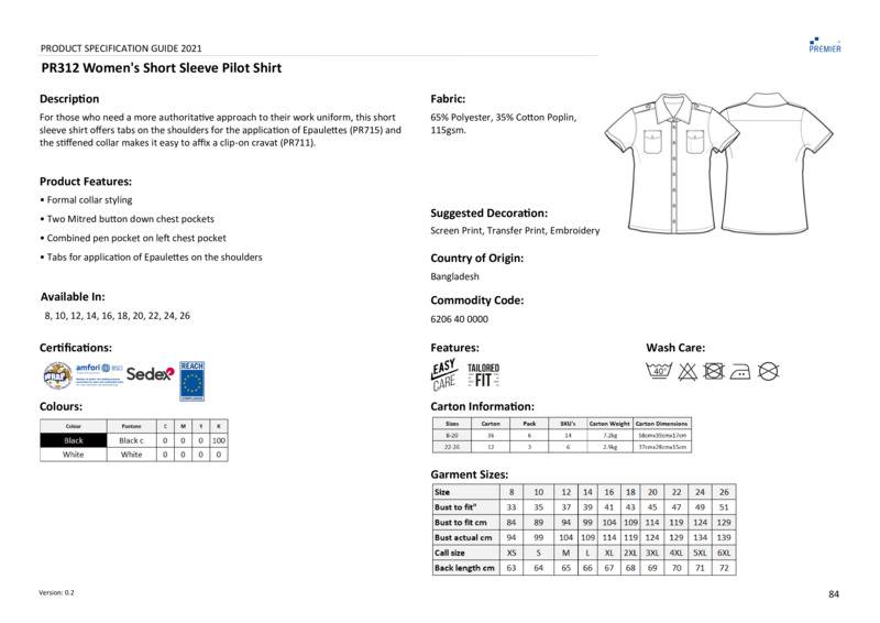 Premier Women's short sleeve pilot blouse