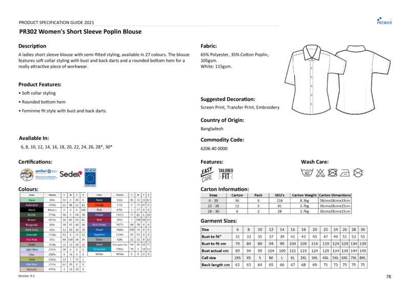 Premier Women's short sleeve poplin blouse