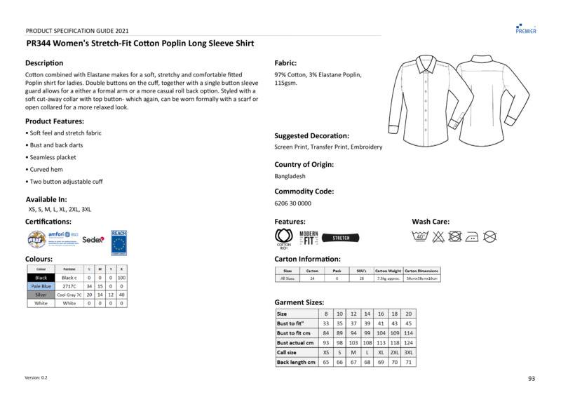 Premier Women's stretch fit cotton poplin long sleeve blouse
