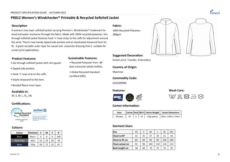 Premier Women’s Windchecker® printable and recycled softshell jacket