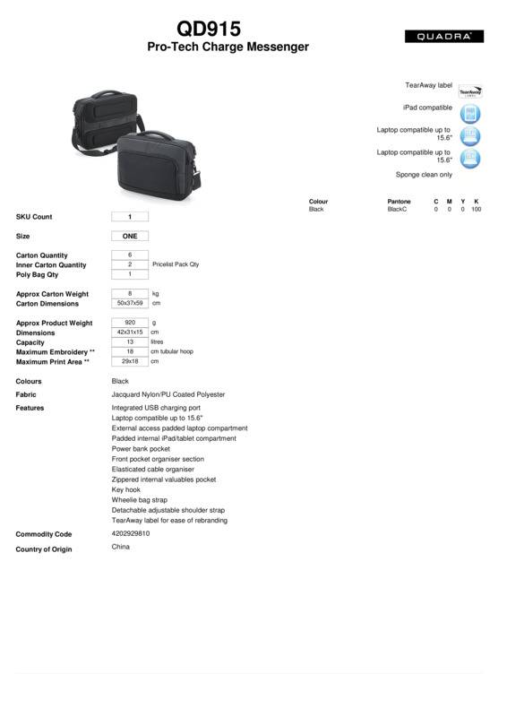 Quadra Pro-tech charge messenger