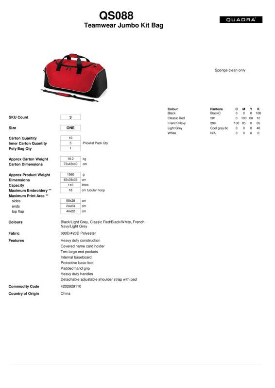 Quadra Teamwear jumbo kit bag