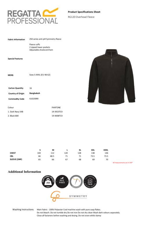 Offering a stylish alternative to the regular fleece, the Overhead fleece combines warmth with minimal weight. The anti-pill fleece generates and traps in heat in a truly bulk-free composition. Zipped pockets make this men's mid layer a trusty go-to piece.250 series anti-pill symmetry fleece with fleece cuffs2 zipped lower pocketsAdjustable shockcord hem.Age Group: AdultFabric: 250 series anti-pill symmetry fleeceGender: MalePlus Size: YesProduct Type: FleeceSize Range: S to 3XLSizing To Fit: S 37/38″ M 39/40″ L 41/42″ XL 43/44″ 2XL 46/48″ 3XL 49/51″Tag: Sewn TagWashing Instructions: Cool machine wash with pure soap flakes. Do not bleach. Do not tumble dry. Do not iron.Do not dry clean. Close all fasteners before washing and drying. Do not store whilst dam.p Fabric may be damaged by solvents, alcohols, and insecticides.Weight (GSM): 250gsm]]>
