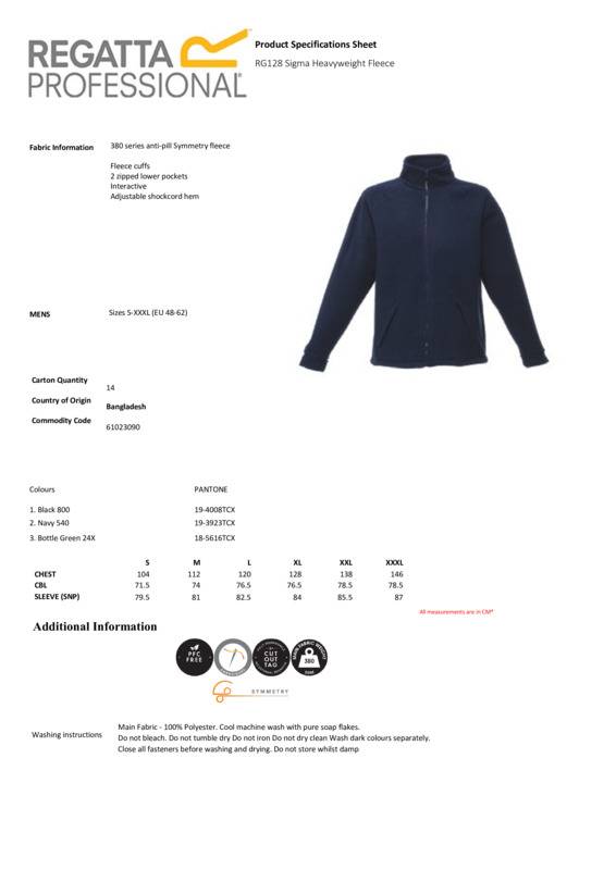 Stay super warm and secure in the Sigma fleece. The heavyweight fleece is crafted from an anti-pill fabric for long-lasting wear. It's quick-drying too, drawing moisture away from the skin to keep you comfortable. The men's fleece features fleece cuffs for that protective jacket feel.380 series anti-pill symmetry fleece with fleece cuffsAdjustable shockcord hem2 zipped lower pocketsInteractive.Age Group: AdultFabric: 380 series anti-pill symmetry fleeceGender: MalePlus Size: YesProduct Type: FleeceSize Range: S to 3XLSizing To Fit: S 37/38″ M 39/40″ L 41/42″ XL 43/44″ 2XL 46/48″ 3XL 49/51″Tag: Sewn TagWashing Instructions: Cool machine wash with pure soap flakes. Do not bleach. Do not tumble dry.Do not iron. Do not dry clean. Wash dark colours separately. Close all fasteners before washing and drying. Do not store whilst damp.Weight (GSM): 380gsm]]>