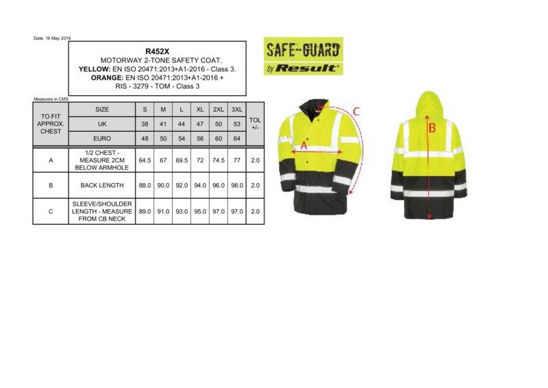 Durable assurance on visibility and value style50mm reflective shoulder, body and sleeve safety bandsStorm flap covered large pocketsAdjustable foldaway hoodStud closing stormflapDiamond quilted liningHeavy duty 2-way zipFully taped seamsStand-up collarInside pocketDark lower panel masks grimeReady to brand - tag freeEN ISO 20471:2013+A1-2016 - Class 3RIS-3279-TOM - Class 3 (Orange only)Oeko-Tex certified.Accreditations: Oeko-TexAge Group: AdultFabric: 100% PolyesterGender: MalePlus Size: YesProduct Type: JacketsSize Range: S to 3XLSizing To Fit: S 38″ M 41″ L 44″ XL 47″ 2XL 50″ 3XL 53″Tag: TaglessWashing Instructions: Machine wash 40°. Do not bleach. Iron low. Do not tumble dry. Do not dry clean.Weight (GSM): 160gsm]]>