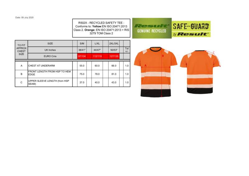 Cool and breathable, an eye-catching and comfortable, safety T-shirt in recycled, soft textured fabric with Hi Tech Stretch.Top stitched shoulder and sleeve detailEasy-stretch, printed safety bandsContrast black panel and collarStretch ribbed collarEnd of life recyclable: ideal for Corporate Sustainable ResponsibilityInnovative dark panel design to mask grimeMade from highest quality sustainable yarns using 100% post-consumer PET recycled plastic bottles as an equivalent to conventional yarnsBiodegradable packaging and recycled cartons EN ISO 20471: 2013 + A1:2016 Class 2 / Ris-3279-Tom Class 2 (orange only)Oeko-Tex certified.Accreditations: Oeko-Tex|Global Recycled StandardAge Group: AdultFabric: Body: 100% Recycled polyester. Collar: 100% PolyesterGender: MalePlus Size: YesProduct Type: T-ShirtsSize Range: S/M to 4XL/5XLSizing To Fit: S/M 38/41″ L/XL 44/47″ 2XL/3XL 50/53″ 4XL/5XL 56/59″Tag: Tear-outWashing Instructions: Machine wash 40 °. Do not bleach. Do not iron. Do not Dry clean. Do not tumble dry.Weight (GSM): 155gsm]]>