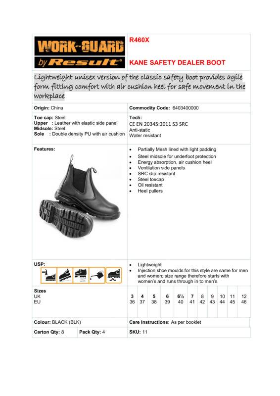 This lightweight unisex version of the classic safety boot provides agile, form-fitting comfort with air cushion heel for safe movement in the workplace. CE EN 20345:2011 S3 SRCCE EN 20345:2011 S3 SRCAnti-staticWater-resistantPartially mesh-lined with light paddingSteel midsole for underfoot protectionEnergy absorption, air cushion heelVentilation side panelsSRC slip resistanceSteel toecapOil-resistantHeel pullersUnisex injection shoe mould.Age Group: AdultFabric: LeatherGender: UnisexPlus Size: NoProduct Type: BootsSize Range: 3 to 12Sizing To Fit: 3 36 4 37 5 38 6 39 6.5 40 7 41 8 42 9 43 10 44 11 45 12 46Tag: Sewn TagWashing Instructions: The shoes should be regularly cleaned and treated with a suitable cleaning product. They should not be dried mechanically or heated, as this can cause the upper material to deteriorate, harden and break.]]>
