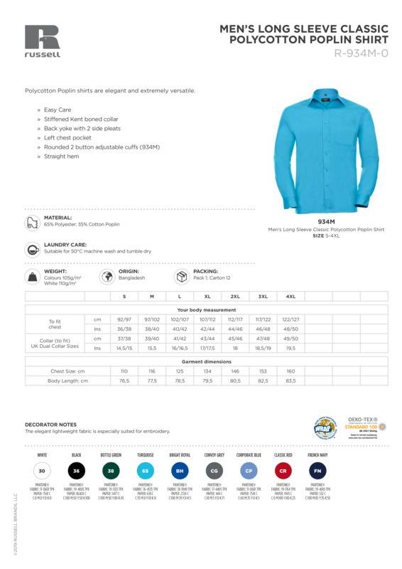 Russell Collection Long sleeve polycotton easycare poplin shirt