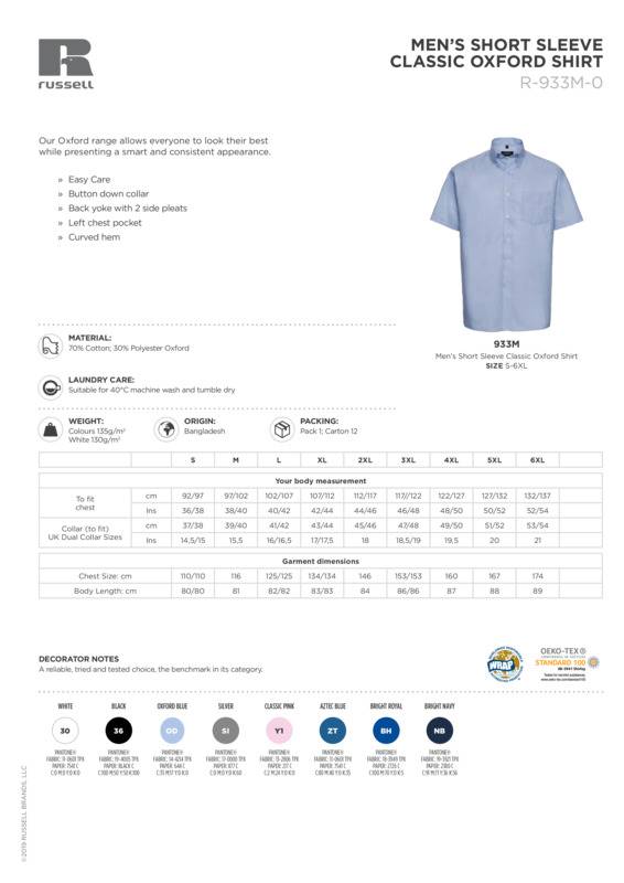 Russell Collection Short sleeve easycare Oxford shirt