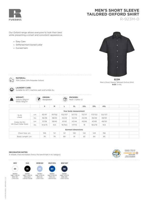 Russell Collection Short sleeve easycare tailored Oxford shirt