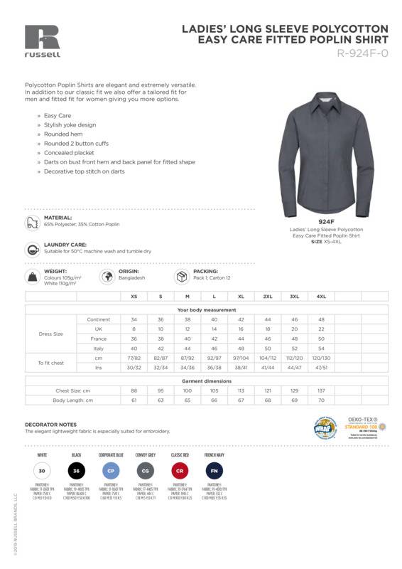 Russell Collection Women's long sleeve polycotton easycare fitted poplin shirt