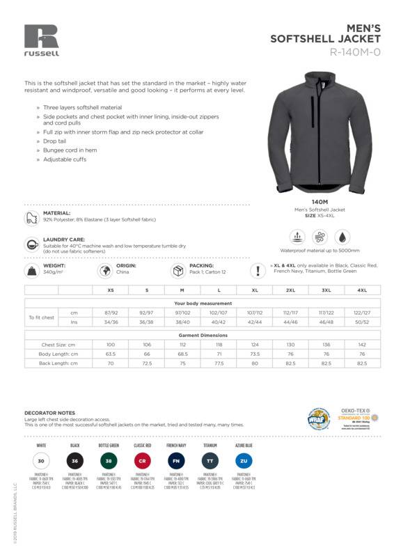 This is the softshell jacket that has set the standard in the market - highly water-resistant and windproof, versatile and good looking - it performs at every level.3 layer softshell fabric with breathable membrane and bonded microfleece lining, water resistant to 5000mmSide pockets and chest pocket with inner lining, reversed zip and cord pullsFull zip with inner storm flap and zip neck protector at collarBungee cord in hemAdjustable cuffsDrop tailLarge left chest side decoration accessFully launderable at 40°CWRAP certified.Accreditations: Oeko-Tex|WRAPAge Group: AdultFabric: 92% Polyester, 8% ElastaneGender: MalePlus Size: YesProduct Type: SoftshellsSize Exclusions: *3XL and 4XL only available in these coloursSize Range: XS to 4XLSizing To Fit: XS 34/36″ S 36/38″ M 38/40″ L 40/42″ XL 42/44″ 2XL 44/46″ 3XL* 46/48″ 4XL* 48/50″Tag: Sewn TagWashing Instructions: Suitable for 40C wash and low temperature tumble dry (do not use fabric softeners)Weight (GSM): 340gsm]]>