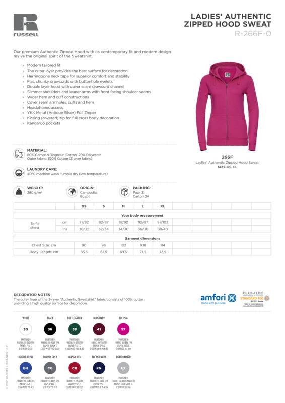 The premium authentic zipped hood with its contemporary fit and modern design revives the original spirit of the sweatshirt.Luxurious 3-layer fabric for more wearer comfort and higher performanceContemporary, feminine fitYKK metal (antique silver) full zipKissing (covered) zip for full cross body decorationFlat, chunky drawcords with buttonhole eyeletsDouble layer hood with drawcord channelLeaner arms with front facing shoulder seamsCoverseamed armholes, cuffs and hemHerringbone neck tapeMP3 earphone accessBSCI certified.Accreditations: Amfori BSCI|Oeko-TexAge Group: AdultFabric: 80% Combed ringspun cotton, 20% PolyesterGender: FemalePlus Size: NoProduct Type: HoodiesSize Exclusions: *2XL only available in these coloursSize Range: XS to 2XLSizing To Fit: XS 30/32″ S 32/34″ M 34/36″ L 36/38″ XL 38/40″ 2XL* 40/42″Tag: Sewn TagWashing Instructions: Suitable for 40C wash and low temperature tumble dryWeight (GSM): 280gsm]]>