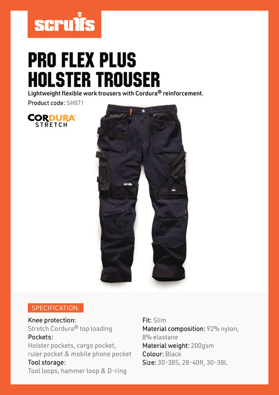 Flexible slim fit trousers with four-way stretch fabric throughout for ultimate comfort and freedom of movement. Abrasion-resistant top-loading stretch CORDURA® knee pockets for enhanced durability. Features two kneepad positions for optimum comfort. Triple-stitched seams for long-lasting durability.Flexible slim fit trousers with four-way stretch fabric throughout for ultimate comfort and freedom of movementAbrasion-resistant, top-loading stretch CORDURA® knee pockets for enhanced durabilityFeatures two kneepad positions for optimum comfortEasy access holster pockets, cargo pocket, rule pocket, mobile phone pocket, secure zipped pocketHammer loop, tool loops and D-ring for tool and accessory storageAdjustable hem with hard-wearing canvas fabric reinforcement for enhanced durabilityTriple-stitched seams for long-lasting durabilityCertified amfori BSCI.Accreditations: Amfori BSCIAge Group: AdultFabric: 92% Nylon, 8% ElastaneGender: MaleLeg Length: Leg length: Short 30″, Regular 32″, Long 34″Plus Size: NoProduct Type: TrousersSize Exclusions: *38″, 40″ only available in regularSize Range: 30R to 40RSizing To Fit: 30″ 32″ 34″ 36″ 38″* 40″*Tag: Sewn TagWashing Instructions: Machine Wash 40°C. Dry clean – any solvent except trichloroethylene. Medium iron. Tumble dry low. Do not bleach.Weight (GSM): 200gsm]]>