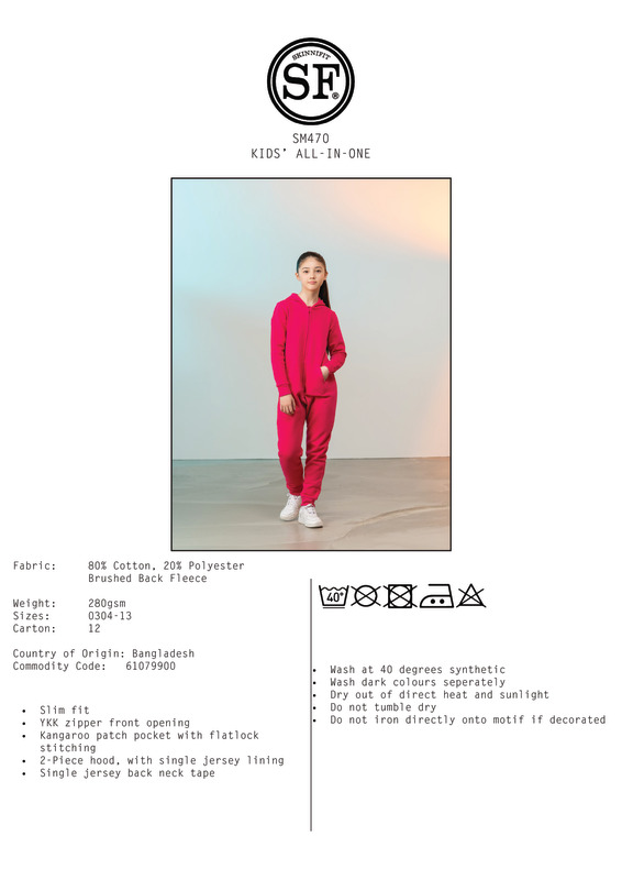 Loungewear, but make it fashion. A cool slim fit all-in-one with front zip opening. Cosy casual wear for after class. Features tear-out label for easy rebranding.Tear-out labelYKK zipper front openingSlim fit elasticated 1x1 rib cuffs2-piece hood, with single jersey liningKangaroo patch pocket with flatlock stitchingFlatlock stitching around armholesTaped back neckBSCI certifiedVegan certified.Accreditations: Amfori BSCI|Peta Approved VeganAge Group: KidsFabric: 80% Cotton, 20% Polyester. Heather Grey: 71% Cotton, 23% Polyester, 6% ViscoseGender: UnisexPlus Size: NoProduct Type: OnesiesSize Range: 3/4yrs to 13yrsSizing To Fit: 3/4 22″ 5/6 24″ 7/8 26″ 9/10 28″ 11/12 30.5″ 13 33″Tag: Tear-outWashing Instructions: Do not bleach. Do not tumble dry. 2 dot iron. Do not dry clean. Wash at 40 degrees synthetic. Wash dark colours separately. Do not iron directly onto motif If decorated. Keep away from fire.Weight (GSM): 280gsm]]>