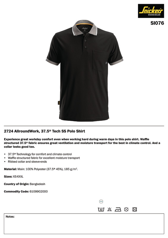 Snickers AllroundWork 37.5® Tech short sleeve polo shirt (2724)