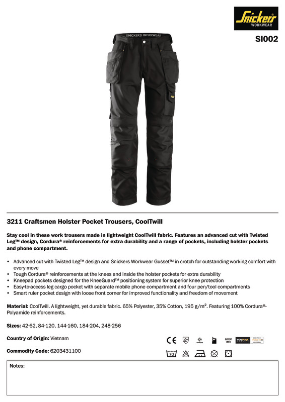 Snickers CoolTwill trousers (3211)