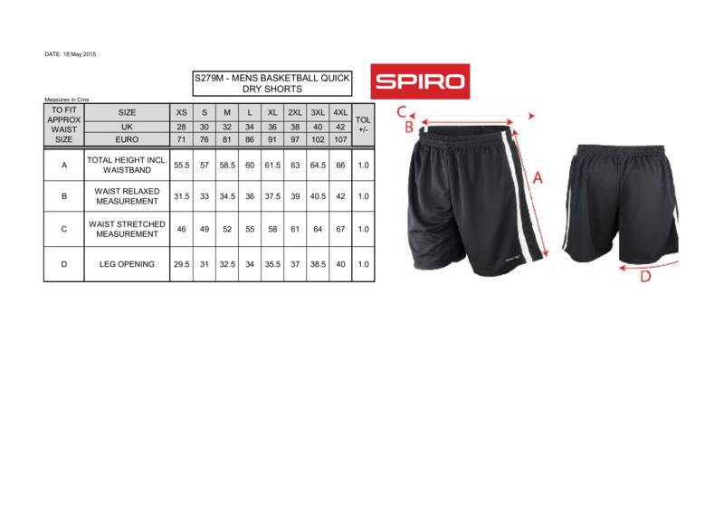 Lightweight, breathable and loosely fitted in a traditional basketball style. A classic sports short from SPIRO.Contrast colour side trimElasticised waist with drawstringLong leg styleExtremely lightweight in soft athletic quick dry fabricComfort fit in traditional baggy styleBreathableCo-ordinated Basket Ball wear rangeOeko-Tex certified.Accreditations: Oeko-TexAge Group: AdultFabric: 100% Polyester jacquard meshGender: MalePlus Size: YesProduct Type: ShortsSize Range: XS to 4XLSizing To Fit: XS 28″ S 30″ M 32″ L 34″ XL 36″ 2XL 38″ 3XL 40″ 4XL 42″Tag: TaglessWashing Instructions: Machine wash 40°. Do not bleach. Do not tumble dry. Iron at a low temperature. Do not dry clean.Weight (GSM): 145gsm]]>