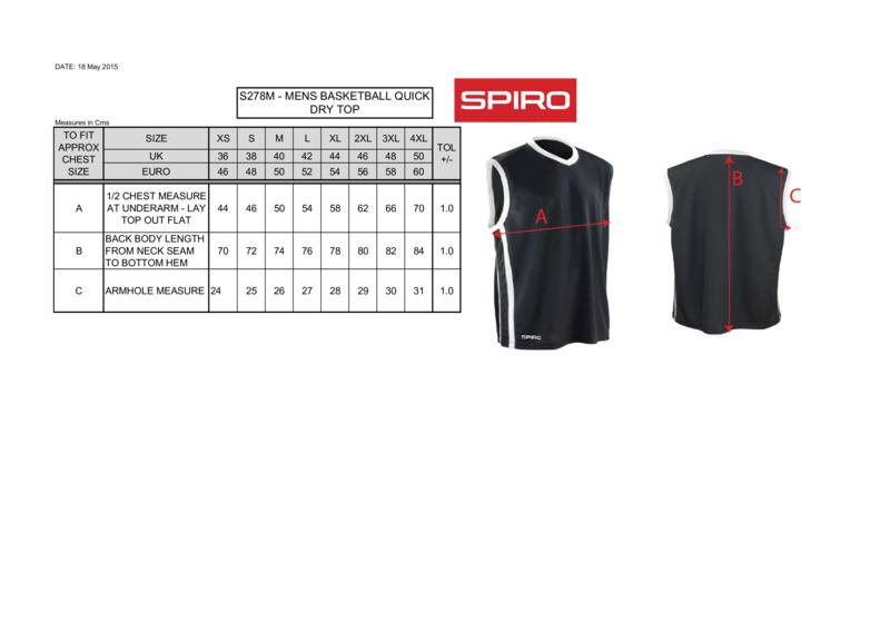 Lightweight, breathable and loosely fitted in a traditional basketball style. A classic sports top from SPIRO.Contrast v-neck & armhole trimContrast side stripesExtremely lightweight in soft athletic quick dry fabricComfort fit in traditional baggy styleBreathableCo-ordinate with S278M Basket Ball shortsOeko-Tex certified.Accreditations: Oeko-TexAge Group: AdultFabric: 100% Polyester jacquard meshGender: MalePlus Size: YesProduct Type: VestsSize Range: XS to 4XLSizing To Fit: XS 36″ S 38″ M 40″ L 42″ XL 44″ 2XL 46″ 3XL 48″ 4XL 50″Tag: Sewn TagWashing Instructions: Machine wash 40°. Do not bleach. Do not tumble dry. Iron at a low temperature. Do not dry clean.Weight (GSM): 145gsm]]>