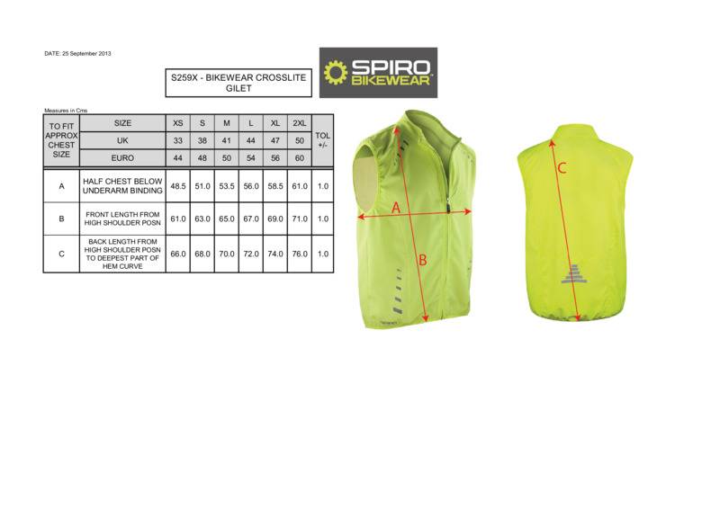 The Bikewear Crosslite Gilet offers lightweight performance and visibility with a longer contoured fit for cycling comfort.Lightweight, breathable and windproofIdeal layer garmentComfort fitUnisex fitQuick dryLonger fit aids cycling position contourReflective prints for enhanced visibilityPocket freeReflective print front and backFull front zip with reflective panelStand up collarLonger back panel.Decoration Guidelines:Decorating methods: Embroidery & Transfer printDecorators access point: Open.Age Group: AdultFabric: 100% PolyesterGender: MalePlus Size: NoProduct Type: Gilets & Body WarmersSize Range: XS to 2XLSizing To Fit: XS 33″ S 38″ M 41″ L 44″ XL 47″ 2XL 50″Tag: Sewn TagWashing Instructions: 30 degrees. Do not iron. Do not bleach. Do not dry clean. Do not tumble dry]]>