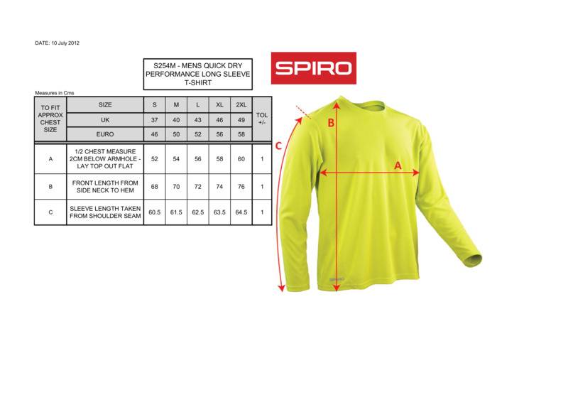 Quick dry performance and fast wicking control makes this well fitted long sleeve t-shirt perfect for sport, work and play.Quick dry performance base layerFast moisture wicking control keeps skin cool and comfortableLightweight soft athletic quick dry functionCover stitch seams, self fabric bound neckPrinted neck labelUltra reflecting Spiro print logo bottom right position.Decoration Guidelines:Decorating methods: Embroidery & Transfer printDecorators access point: OpenOeko-Tex certified.Accreditations: Oeko-TexAge Group: AdultFabric: 100% PolyesterGender: MalePlus Size: NoProduct Type: T-ShirtsSize Range: S to 2XLSizing To Fit: S 37″ M 40″ L 43″ XL 46″ 2XL 49″Tag: Sewn TagWashing Instructions: 40 degrees. Do not bleach. Iron on medium heat. Do not dry clean. Do not tumble dryWeight (GSM): 160gsm]]>
