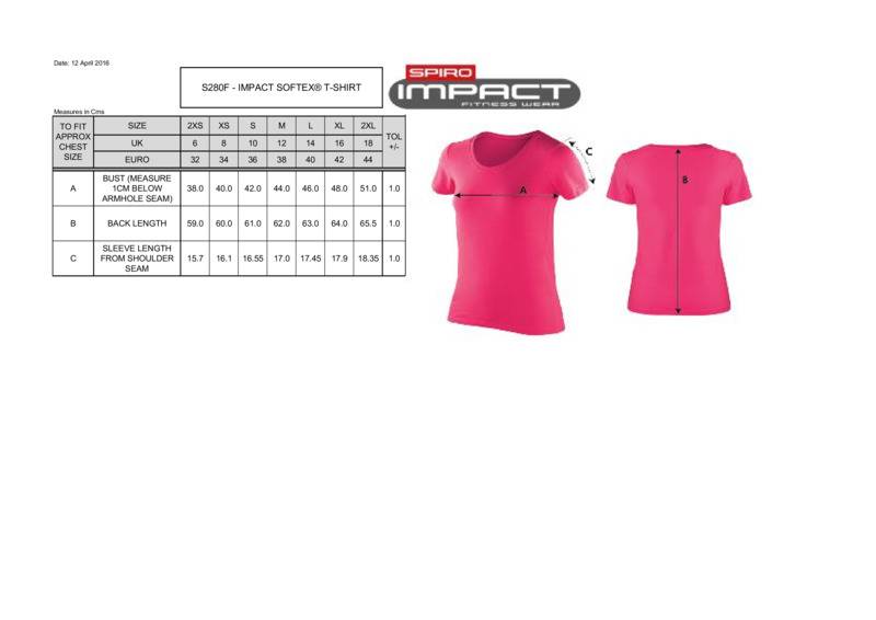 As part of the SPIRO IMPACT range this beautifully designed high tec fitness t-shirt brings you the latest Softex carbon brushed fabrics with super soft quick dry stretch and comfort. Mix and match with the other members of the Impact family to create the ultimate gymwear or event led promotional set!Tech info: Breathable, Quick DryCarbon brushed for peached softnessFull fit for comfort wearQuick Dri TreatmentReady to brandCo-ordinated hi-colour Impact Fitness rangeSuper soft quick dry fabric with HighTec stretchOeko-Tex certified.Accreditations: Oeko-TexAge Group: AdultFabric: 85% Polyester, 15% ElastaneGender: FemalePlus Size: YesProduct Type: T-ShirtsSize Range: XXS to 2XLSizing To Fit: XXS 6 XS 8 S 10 M 12 L 14 XL 16 2XL 18Tag: Sewn TagWeight (GSM): 160gsm]]>