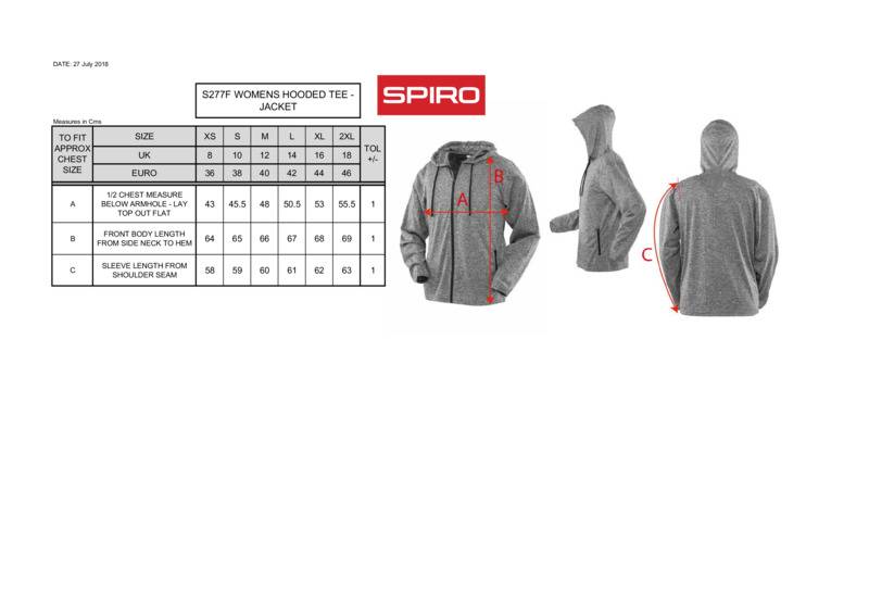 Super stretch lightweight t-shirt jacket hoodi in on-trend printed melange fabric with natural movement and sport cover.BreathableQuick-dryVirtually weightless, ideal layer garmentSuper-Stretch fabric and ergonomic seams allow natural movementSuper stretch fabric hood and hemsIntegral hood with drawcordChest zip and side pocketsOpen cuff and hemOeko-Tex certified.Accreditations: Oeko-TexAge Group: AdultFabric: 100% PolyesterGender: FemalePlus Size: NoProduct Type: JacketsSize Range: XS to 2XLSizing To Fit: XS 8 S 10 M 12 L 14 XL 16 2XL 18Tag: TaglessWashing Instructions: 30° wash. Do not bleach. Do not tumble dry. Do not iron. Do not dry clean.Weight (GSM): 135gsm]]>