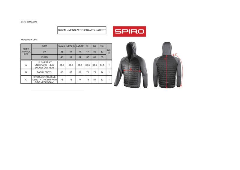 Take the weight off with the Zero Gravity Fitness jacket. Combining stunning looks with virtually weightless performance this modern activity jacket is a must for the serious sportsman and fashionista! Articulated sleeves and thumbholes allow full natural movement whilst the stylish padded body feature creates breathable warmth and comfort. Reach for the stars in Zero Gravity!Tech info: Showerproof, BreathablePadded body feature; Anatomically curved on women’sSuper stretch fabric hood and hemsInvisible zip side pocketsBound cuff, hem and hoodReflective detailThumbhole cuffIntegral hoodQuick dryVirtually weightless, ideal layer garmentThumbholes help top stay in placeArticulated sleeves allows full motionAttractive padded body using faux downVentilated performance, lightweight insulationSuper-Stretch fabric and ergonomic seams allow natural movement.Age Group: AdultFabric: Hood and arms: 92% Polyester, 8% Elastane. Body outer: 100% Nylon. Filling: 100% Faux down polyester. Lining: 100% NylonGender: MalePlus Size: YesProduct Type: JacketsSize Range: S to 3XLSizing To Fit: S 38″ M 41″ L 44″ XL 47″ 2XL 50″ 3XL 53″Tag: Sewn TagWeight (GSM): 160gsm]]>