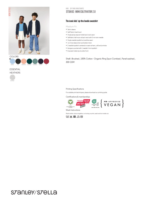 The modernised kids Mini Cultivator 2.0 iconic zip-thru hoodie sweatshirt – now in 100% organic cotton, with a new modern medium fit and wider rib at the hem and sleeve cuffs. It also offers better decoration results than before, plus a colour palette to choose from which is aligned with the Cultivator 2.0 for that total family look.The iconic kids’ zip-thru hoodie sweatshirtMedium fitSet-in sleeveSelf-fabric lined hood1x1 rib at sleeve hem and bottom hemTwin-needle topstitch centred on seam at hem, cuff and armhole.Accreditations: Fair Wear Foundation|GOTS (Licence)|Oeko-Tex Standard 100|Peta Approved VeganAge Group: KidsFabric: 100% Organic ringspun combed cotton brushedGender: UnisexPlus Size: NoProduct Type: HoodiesSize Range: 3/4–12/13Sizing To Fit: 3/4 5/6 7/8 9/11 12/13Tag: Tear-outWashing Instructions: Machine wash, 30?C. Wash similar colours together. No ironing on print. Wash and iron inside out. Do not tumble dry.Weight (GSM): 300gsm]]>