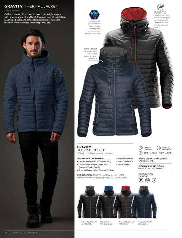 Sleek profile, ultra-lightweight thermal fill jacket with a high-density Showerproof D/W/R outer shell, insulated hood and nylon taffeta lining, provides form fitted, enhanced thermal properties, for maximum protection when you need it most.STORMTECH D/W/R durable water-resistant outer shellQuilted body with ultra soft linerCentre front vislon zipper with contrast zipper teethElasticized cuffsAttached hoodAdjustable hemSet-in sleevesBrushed tricot hand warmer pocketsZippered pockets with garagesChin saverInternal full-length storm flapInside pocketInternal media portEmbroidery accessWRAP certifiedBSCI certifiedOeko-Tex certified.Accreditations: SEDEX|WRAPAge Group: AdultFabric: 100% Nylon ripstop with 100% Polyester polyfillGender: FemalePlus Size: NoProduct Type: SoftshellsSize Range: S to 2XLSizing To Fit: S 10 M 12 L 14 XL 16 2XL 18Tag: Sewn TagWashing Instructions: Machine wash cold. Gentle cycle with like colours. Do not Bleach. Hang to dry. Do not iron. Do not iron decoration. Do not dry clean.Weight (GSM): 40gsm]]>