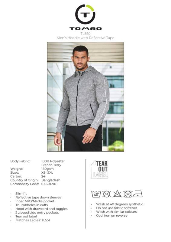 Carefully crafted with functionality and performance in mind, this polyester hoodie with reflective sleeve tape ensures you will standout during those dark winter evenings. This style also features a discreet inner MP3 pocket and thumbholes in the cuff for maximum performance. We sweat the details so you don't have to.LightweightSlimfitReflective tape on sleeve with thumb holes at cuffsTwo zipped side entry pocketsRaglan sleeves and toggles at hoodBSCI certified.Accreditations: Amfori BSCIAge Group: AdultFabric: 100% Polyester French terryGender: MalePlus Size: NoProduct Type: HoodiesSize Range: XS to 2XLSizing To Fit: XS 34/36″ S 36/38″ M 38/40″ L 42″ XL 44/46″ 2XL 48″Tag: Sewn TagWashing Instructions: Do not iron. Wash at 40°C synthetic. Do not bleach. Do not tumble dry. Do not dry clean. Wash dark colours separately. Cool iron on the reverse.Weight (GSM): 180gsm]]>