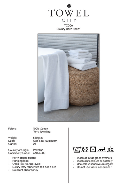 Luxury bath sheet with soft, deep pile and excellent absorbency. Featuring a herringbone border with a convenient hanging loop. Available in a wide range of popular colours.Herringbone style border, hanging loopOeko-Tex certifiedBSCI certified.Accreditations: Amfori BSCI|Oeko-TexAge Group: Adult|KidsFabric: 100% Ringspun cottonGender: UnisexPlus Size: NoProduct Type: TowelsSize Range: OnesizeSizing To Fit: One size (100 x 150cm)Tag: TaglessWashing Instructions: Do not bleach. Tumble dry low. 2 dot iron. Do not dry clean. Wash at 40 degrees cotton. Wash dark colours separately. Do not use fabric conditioner. Use colour sensitive detergent. Dry out of direct sunlight.Weight (GSM): 550gsm Thick pile]]>
