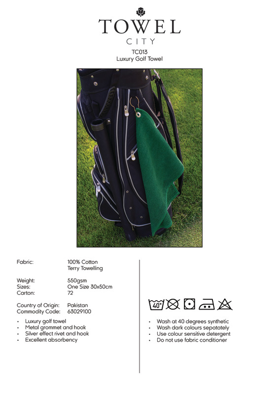 Luxury golf towel with soft, deep pile and excellent absorbency. Featuring a herringbone border with a convenient grommet and hanging loop. Available in a wide selection of popular colours.Silver effect rivet and hookOeko-Tex certifiedBSCI certified.Accreditations: Amfori BSCI|Oeko-TexAge Group: Adult|KidsFabric: 100% Ringspun cottonGender: UnisexPlus Size: NoProduct Type: TowelsSize Range: OnesizeSizing To Fit: One size (30 x 50cm)Tag: TaglessWashing Instructions: Do not bleach. Tumble dry low. 2 dot iron. Do not dry clean. Wash at 40 degrees cotton. Wash dark colours separately. Do not use fabric conditioner. Use colour sensitive detergent. Dry out of direct sunlight.Weight (GSM): 550gsm Thick pile]]>