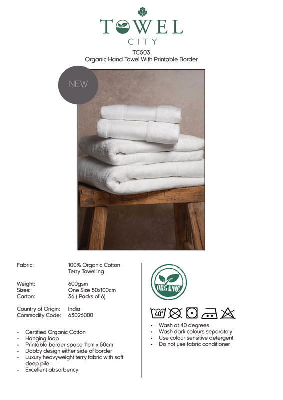 Towel City Organic hand towel with printable border