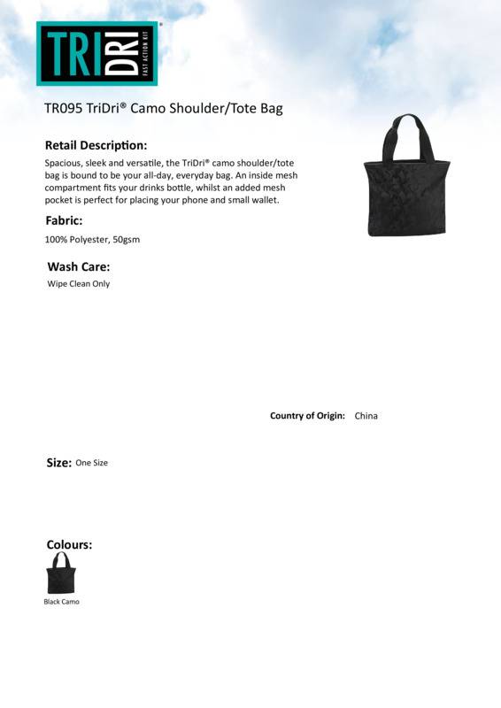 TriDri® camo shoulder/tote bag